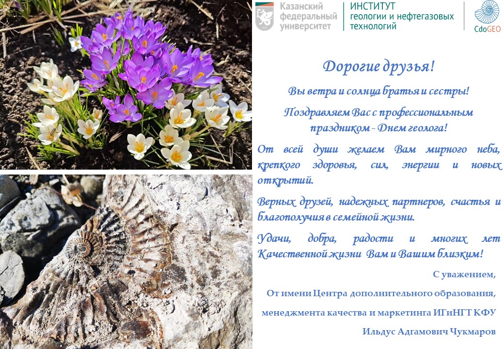 Поздравляю всех геологов, геофизиков, всех, кто связал свою жизнь с изучением Земли! Желаю, чтобы каждый ваш маршрут был безопасным, а каждый анализ — точным. Пусть традиции казанской геологической школы ведут вас к новым открытиям!»