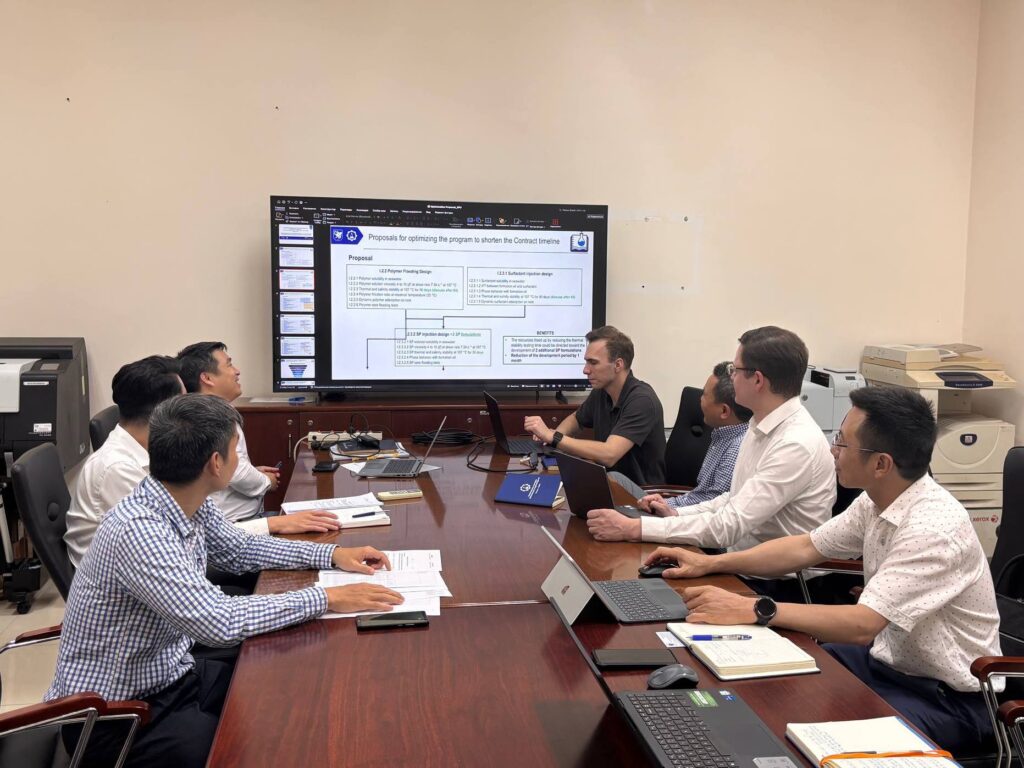 Первым этапом визита стали сессии по нефтегазовому направлению, методам увеличения нефтеотдачи (МУН), технологиям обработки скважин и нефтепромысловой химии с нефтесервисной компанией DMC, генеральным директором которой является Тханг Ту.